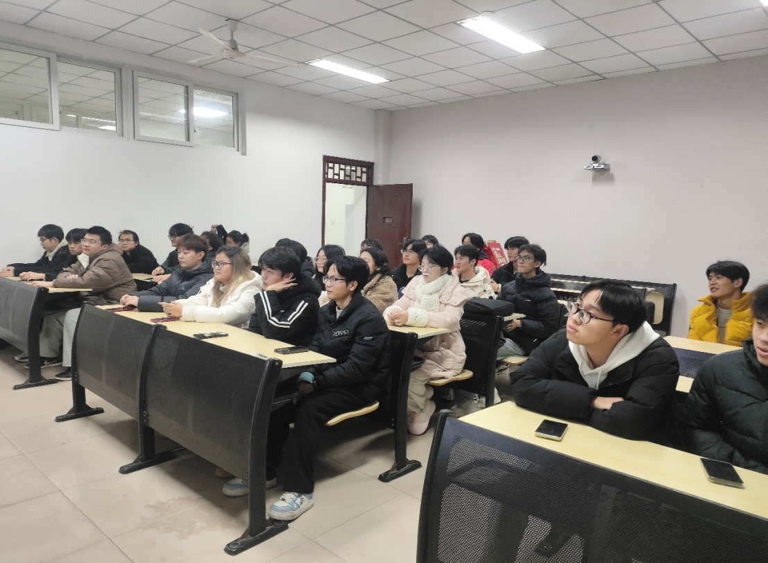 班导会伊始,吴涛老师首先强调了期末复习的重要性,并围绕“科学备考、诚信应考、全面过关”的主题,向同学们提出三点具体建议:一是要明确每门课程的复习范围,在理解的基础上系统记忆,避免盲目泛化;二是考试中应保持卷面完整,即使遇到难题也要尽量书写相关知识点,做到“不留空白”;三是鼓励大家树立信心,争取每门课程顺利通过,以优异的成绩迎接新春佳节。