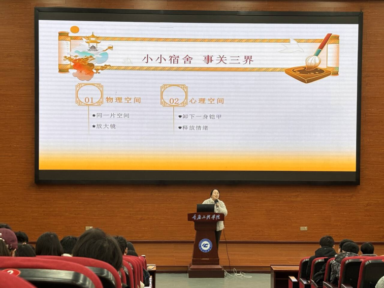 会议伊始,心理中心郭晓伟以“寝室长修炼手册”为主题,围绕寝室物理、心理、社会三重空间,系统讲解了寝室长的角色定位与实操要点。他指出,寝室长不仅是寝室日常事务的组织者,更是室友心理健康的守护者与寝室氛围的建设者,需以暖心行动凝聚室友,携手共建寝室“心灵桃源”。