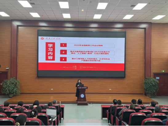 会上,刘子菱书记带领全体教职工学习2026年全国教育工作会议精神,重点领会做好“十五五”教育工作,必须全面把握教育“三大属性”,聚焦教育强国“六大特质”“八大体系”。围绕区域教育发展布局,学习了重庆市教育委员会等8部门印发的《重庆市推动“人工智能+教育”行动方案》的相关内容。全体教职工深入了解重庆“人工智能+教育”的阶段目标,以及升级人工智能基础环境、建设人工智能应用场景、构建人工智能创新生态、促进人工智能素养提升、筑牢人工智能安全屏障等5大重点任务,并结合当前学校和学院改革发展中心工作,重点对创新“人工智能+”教学形态、推动“人工智能+”科学研究、强化“人工智能+”教育评价等内容进行解读和强调。